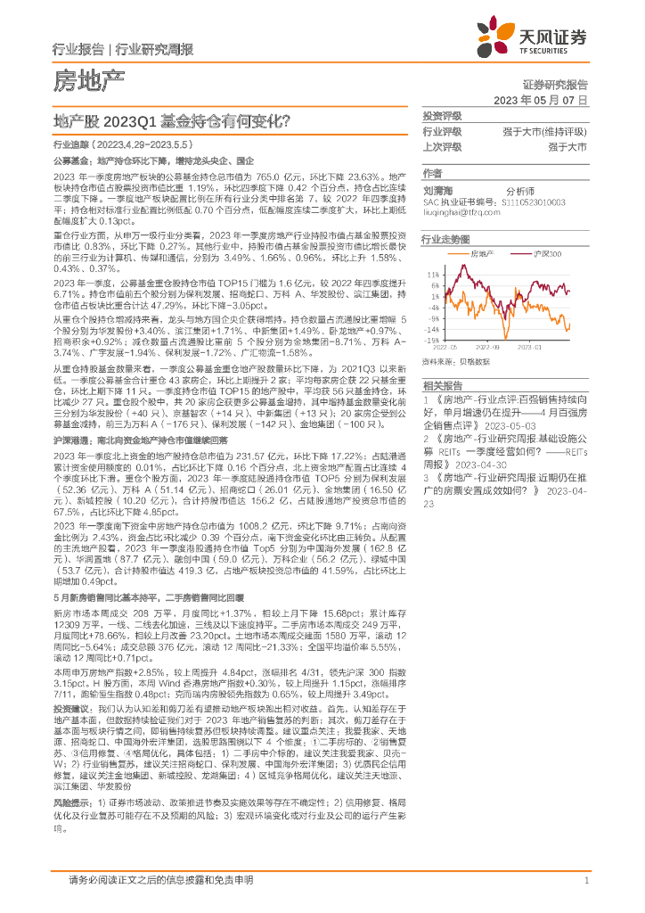 天风证券:房地产行业研究周报:地产股2023Q1基金持仓有何变化?.pdf