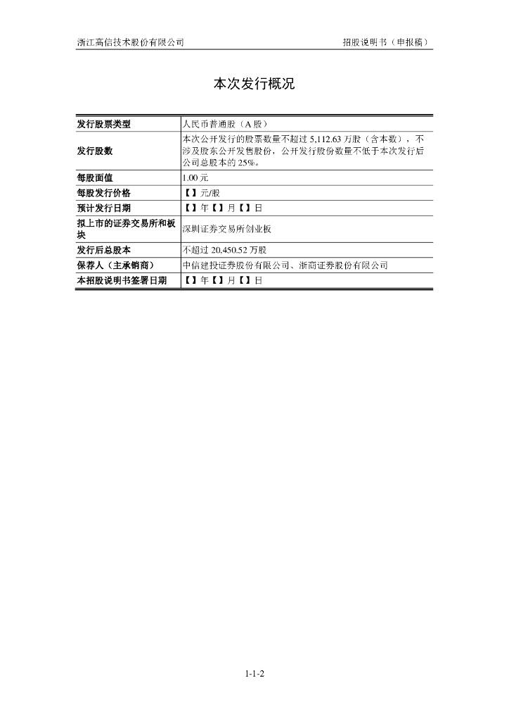 浙江高信技术股份有限公司深交所创业板IPO上市招股说明书.pdf