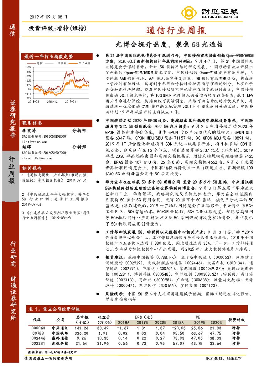 财通证券:通信行业周报:光博会提升热度,聚焦5G光通信.pdf