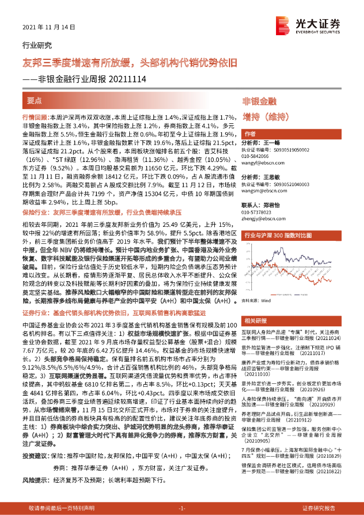 光大证券:非银金融行业周报:友邦三季度增速有所放缓,头部机构代销优势依旧.pdf