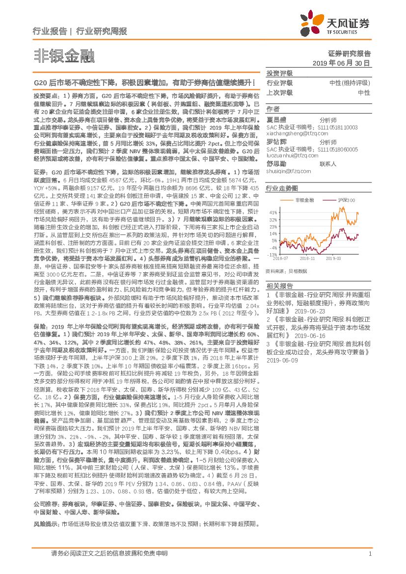 天风证券:非银金融行业研究周报:G20后市场不确定性下降,积极因素增加,有助于券商估值继续提升!.pdf
