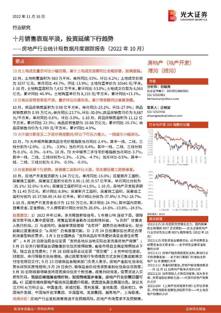 光大证券:房地产行业统计局数据月度跟踪报告(2022年10月):十月销售表现平淡,投资延续下行趋势.pdf