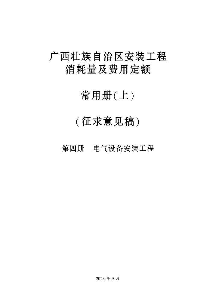 广西壮族自治区安装工程消耗量及费用定额常用册(上)(征求意见稿)第四册 电气设备安装工程.pdf