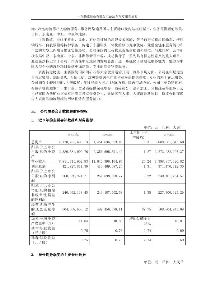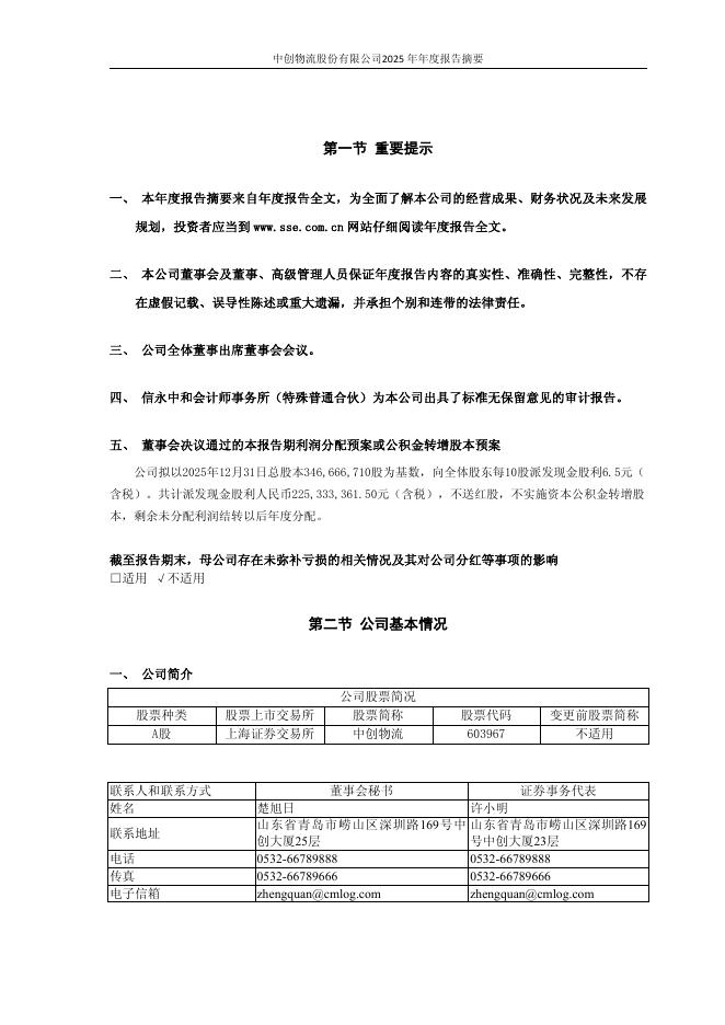 603967-中创物流:中创物流股份有限公司2025年年度报告摘要.pdf