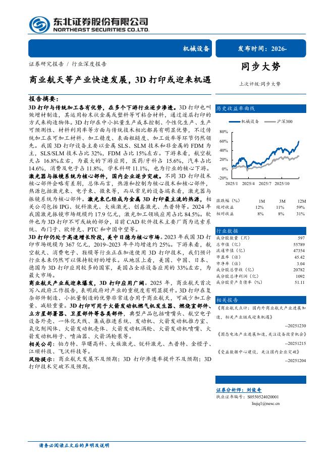 东北证券:商业航天等产业快速发展,3D打印或迎来机遇.pdf