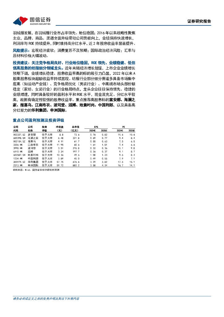 国信证券:纺服板块高股息标的梳理专题:积极关注高ROE高股息纺服细分领域龙头.pdf