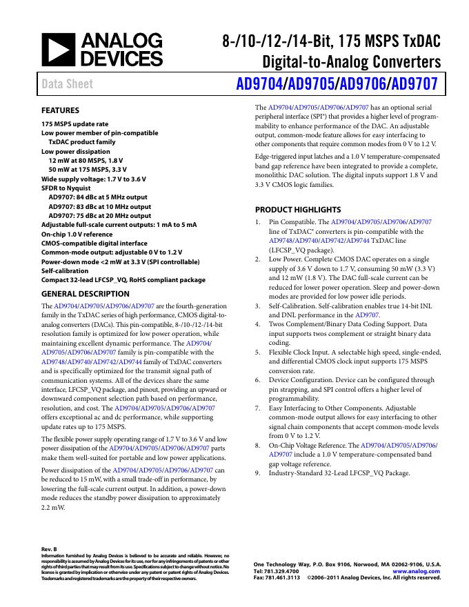 ANALOG DEVICES AD9704/AD9705/AD9706/AD9707 英文产品数据手册 Rev B.pdf