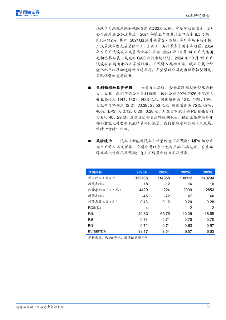 国海证券:广汽集团(601238)-2024年三季报点评:2024Q3业绩承压,静待智能转型触底反弹.pdf