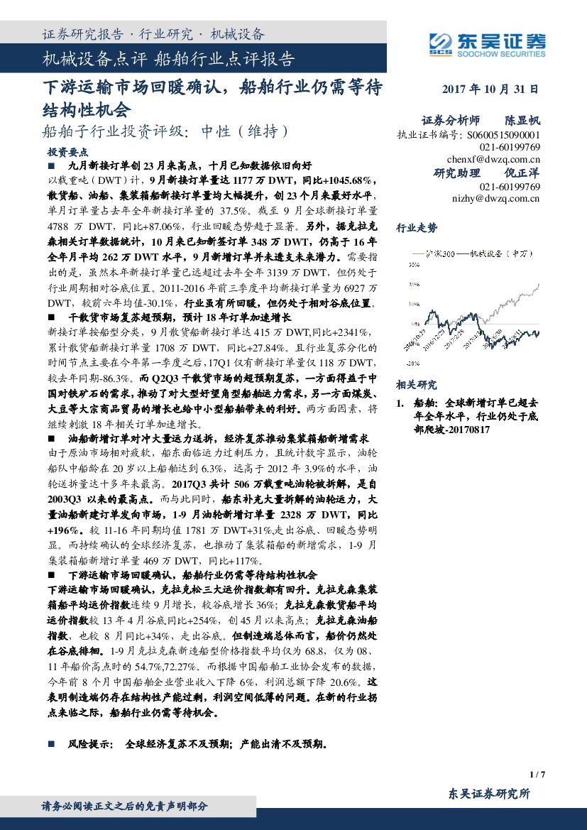 东吴证券:船舶行业点评报告:下游运输市场回暖确认,船舶行业仍需等待结构性机会.pdf
