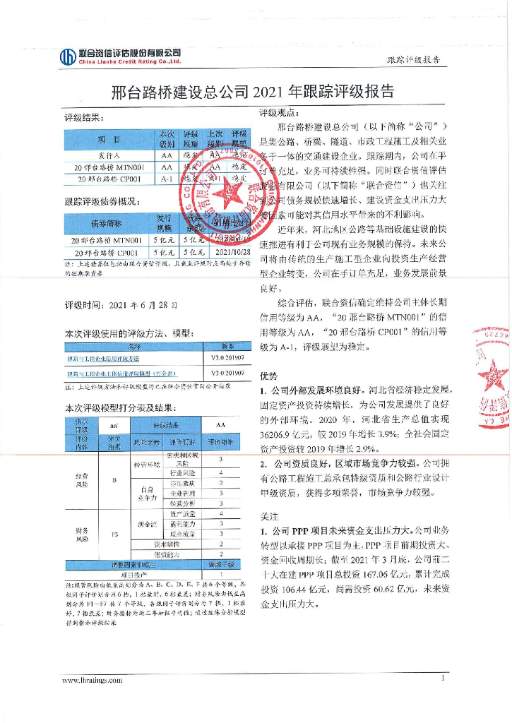 联合资信:邢台路桥建设总公司2021年跟踪评级报告.pdf