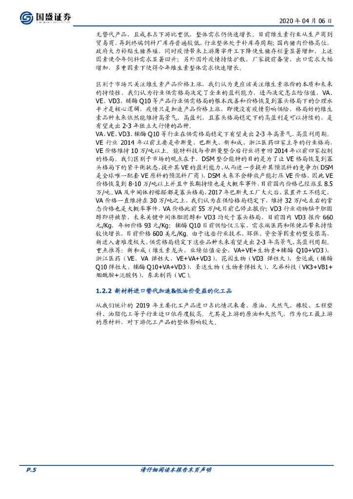 国盛证券:化工行业周报:继续重点推荐维生素,中长期看好新材料国产替代加速.pdf