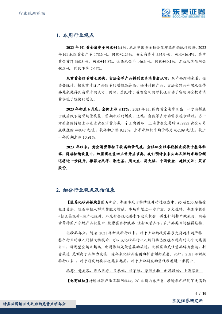 东吴证券:商贸零售行业跟踪周报:2023年H1黄金消费量同比+16.4%,黄金消费预计持续向好,关注黄金珠宝投资机会.pdf