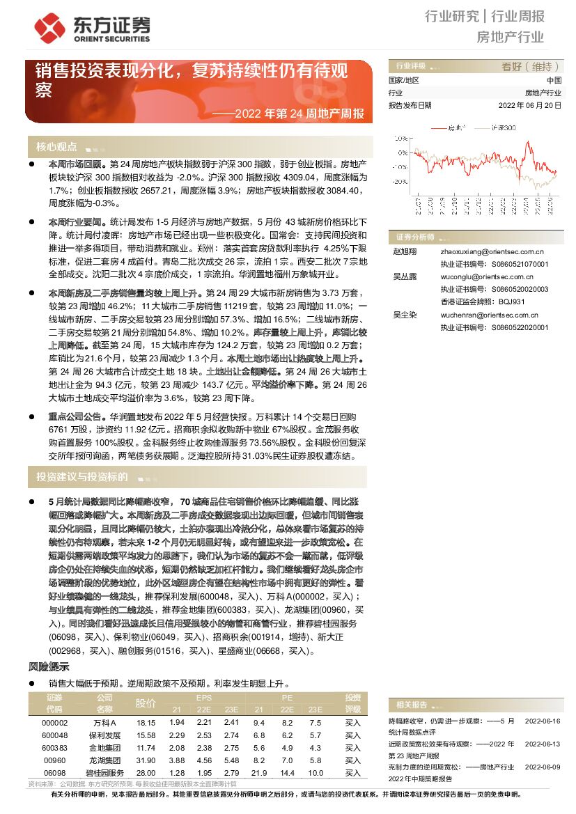 东方证券:房地产行业2022年第24周地产周报:销售投资表现分化,复苏持续性仍有待观察.pdf