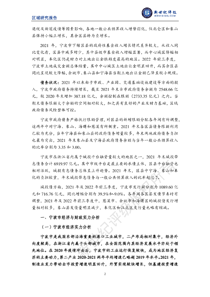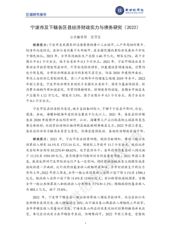 新世纪评级:宁波市及下辖各区县经济财政实力与债务研究(2022).pdf