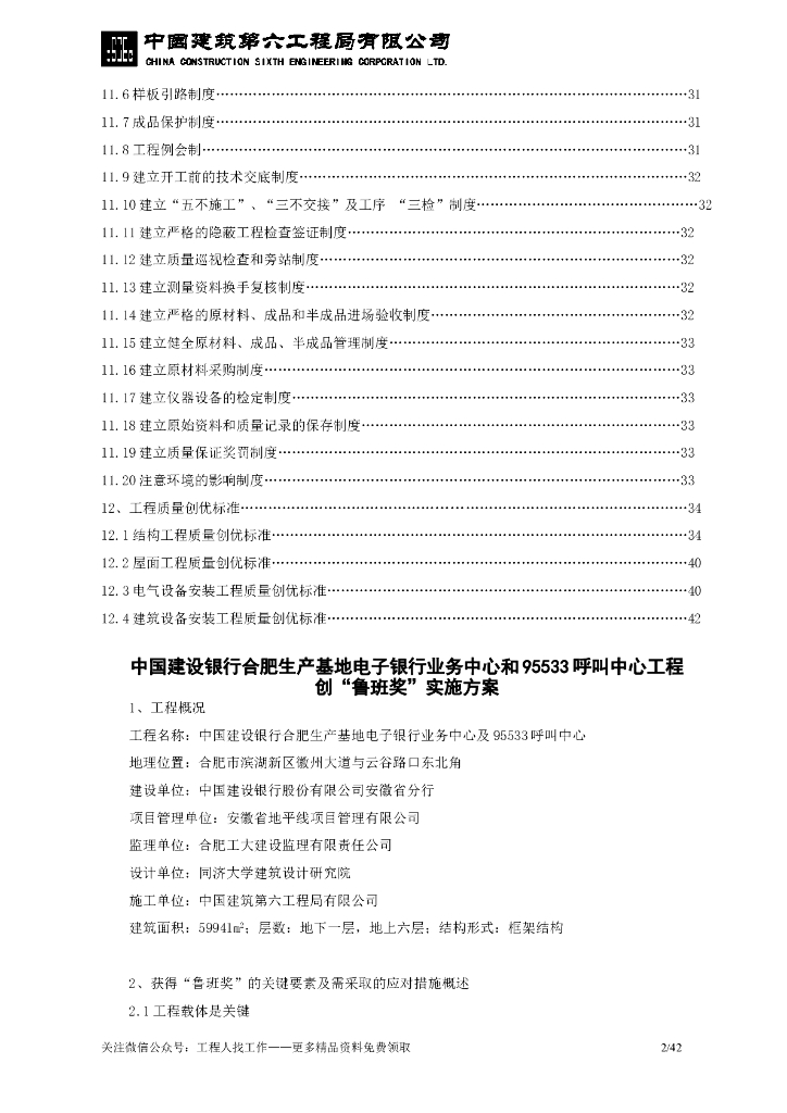 银行中心创鲁班奖实施方案.doc