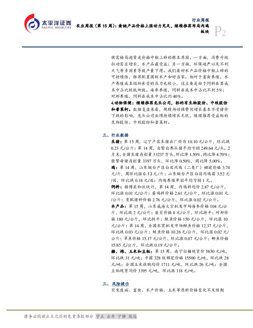 太平洋证券:农业周报(第15 周):禽链产品价格上涨动力充足,继续推荐布局肉鸡板块.pdf