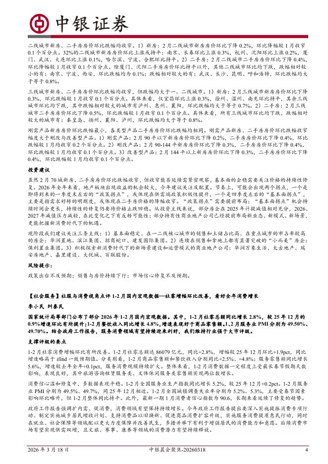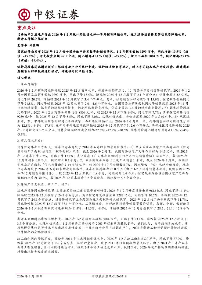 中银证券:房地产行业周报:房地产行业第7周周报(2026年2月7日-2026年2月13日)新房、二手房成交环比降幅扩大、同比由正转负;重庆推出地产新政稳定房地产市场新房成交面积环比降幅扩大、同比由正转负;二手房成交面积环比降幅扩大,同比由
