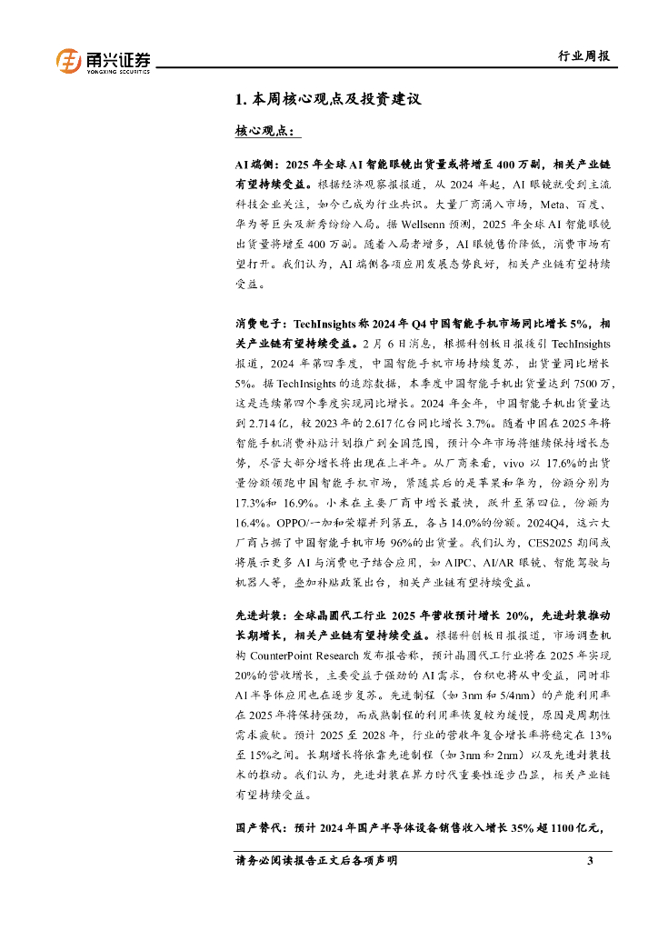 甬兴证券:电子行业周报:2025全球AI眼镜出货大增,中国智能手机逐步复苏.pdf