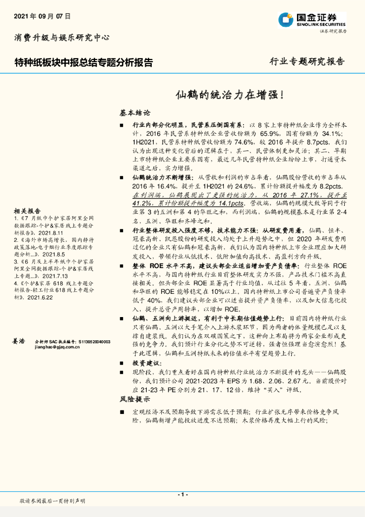 国金证券:特种纸板块中报总结专题分析报告:仙鹤的统治力在增强!.pdf