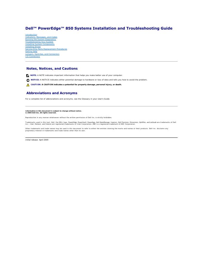 戴尔™ PowerEdge™ 850 系统安装和故障排除指南.pdf
