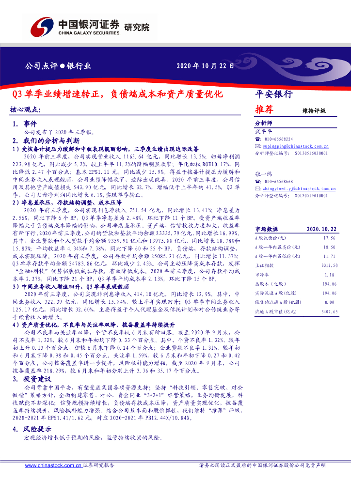 中国银河:平安银行(000001)-Q3单季业绩增速转正,负债端成本和资产质量优化.pdf