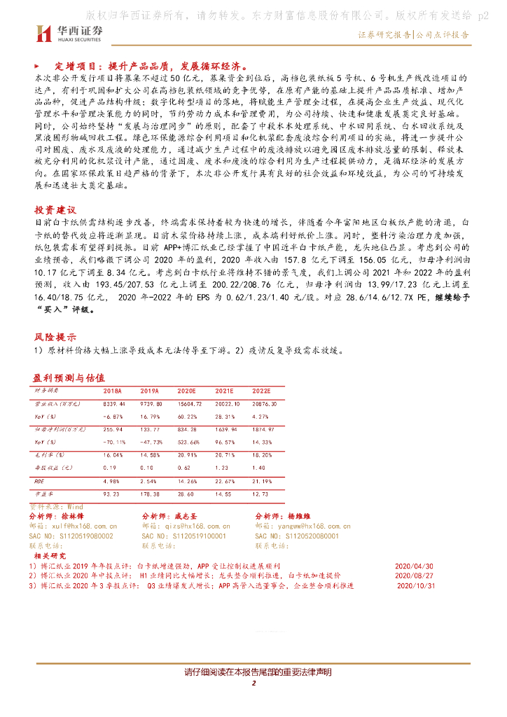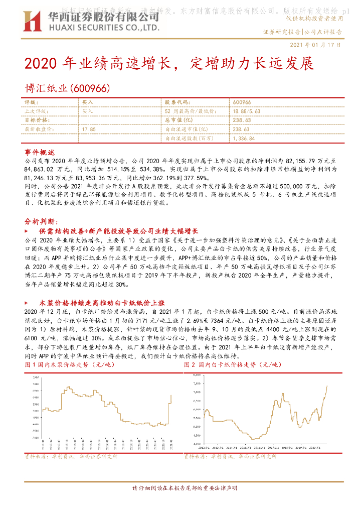 华西证券:博汇纸业(600966)-2020年业绩高速增长,定增助力长远发展.pdf