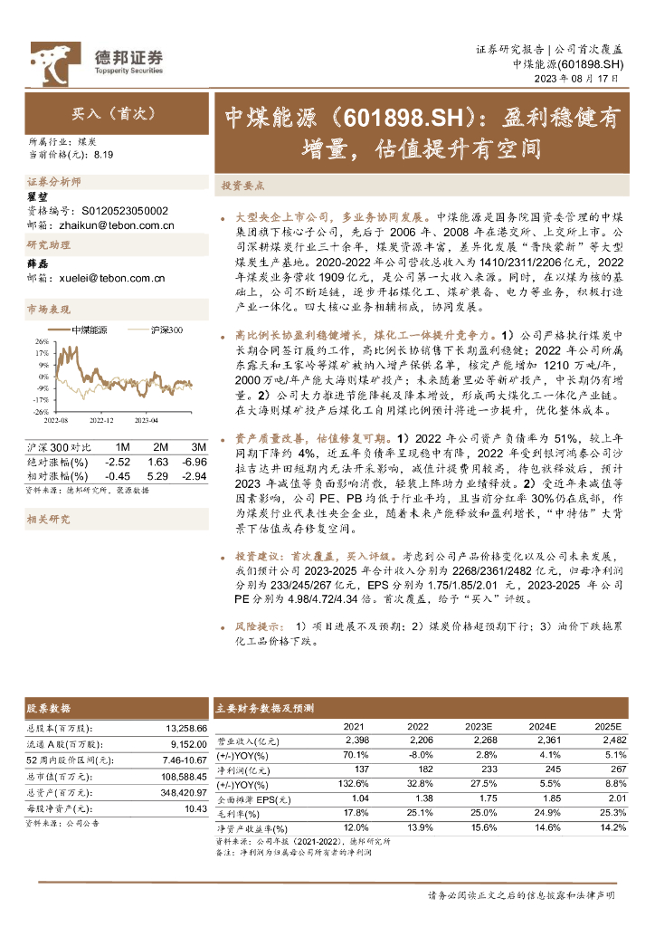德邦证券:中煤能源(601898)-盈利稳健有增量,估值提升有空间.pdf