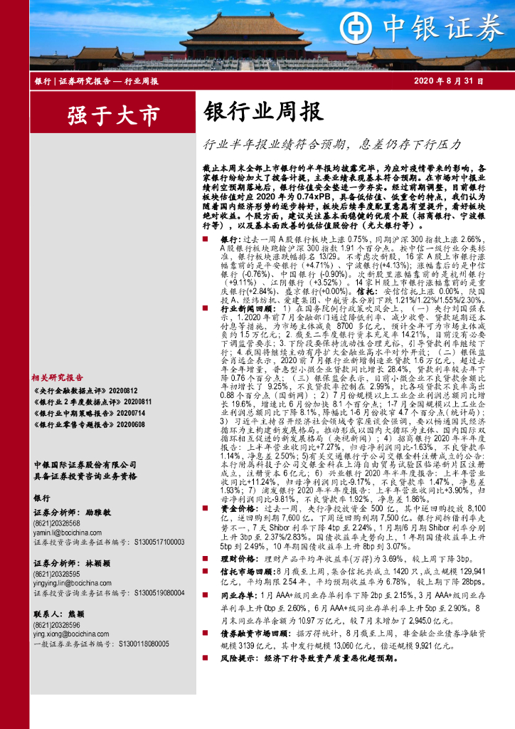 中银证券:银行业周报:行业半年报业绩符合预期,息差仍存下行压力.pdf