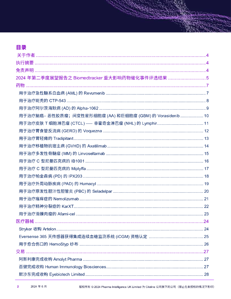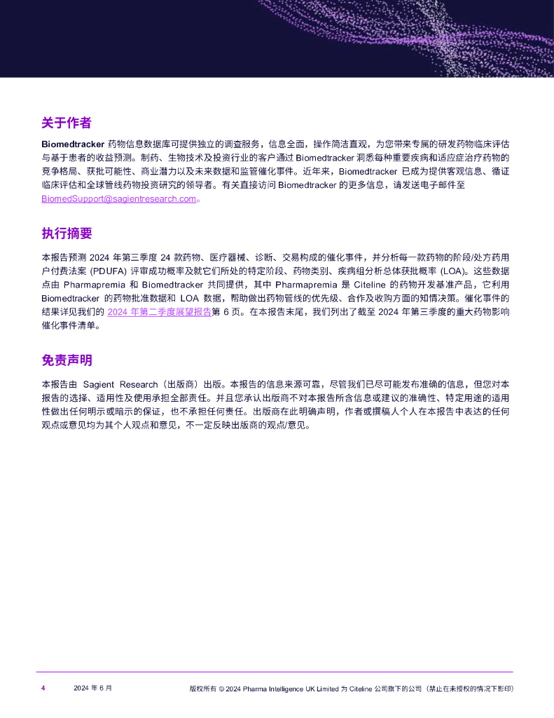 Citeline:2024年第三季度展望报告-24款药物、医疗器械、诊断、交易构成的催化事件预测.pdf