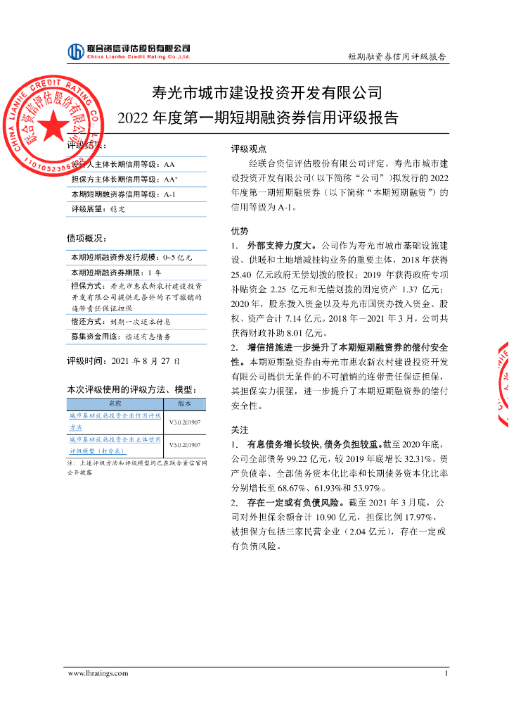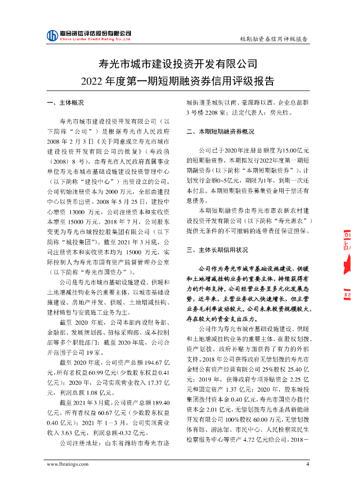 联合资信:寿光市城市建设投资开发有限公司2022年度第一期短期融资券信用评级报告.pdf