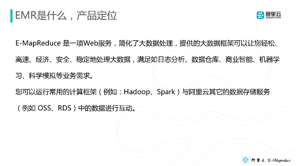 阿里云:E-MapReduce 基于Hadoop/Spark的大数据分析服务.pdf