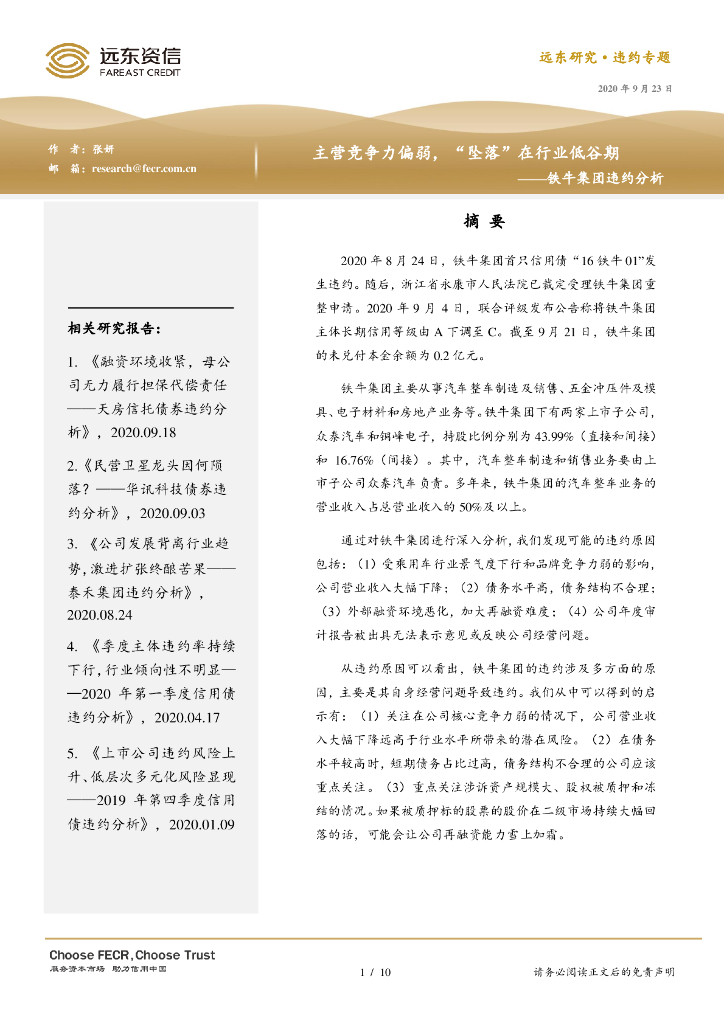 远东资信:主营竞争力偏弱,“坠落”在行业低谷期——铁牛集团违约分析报告.pdf