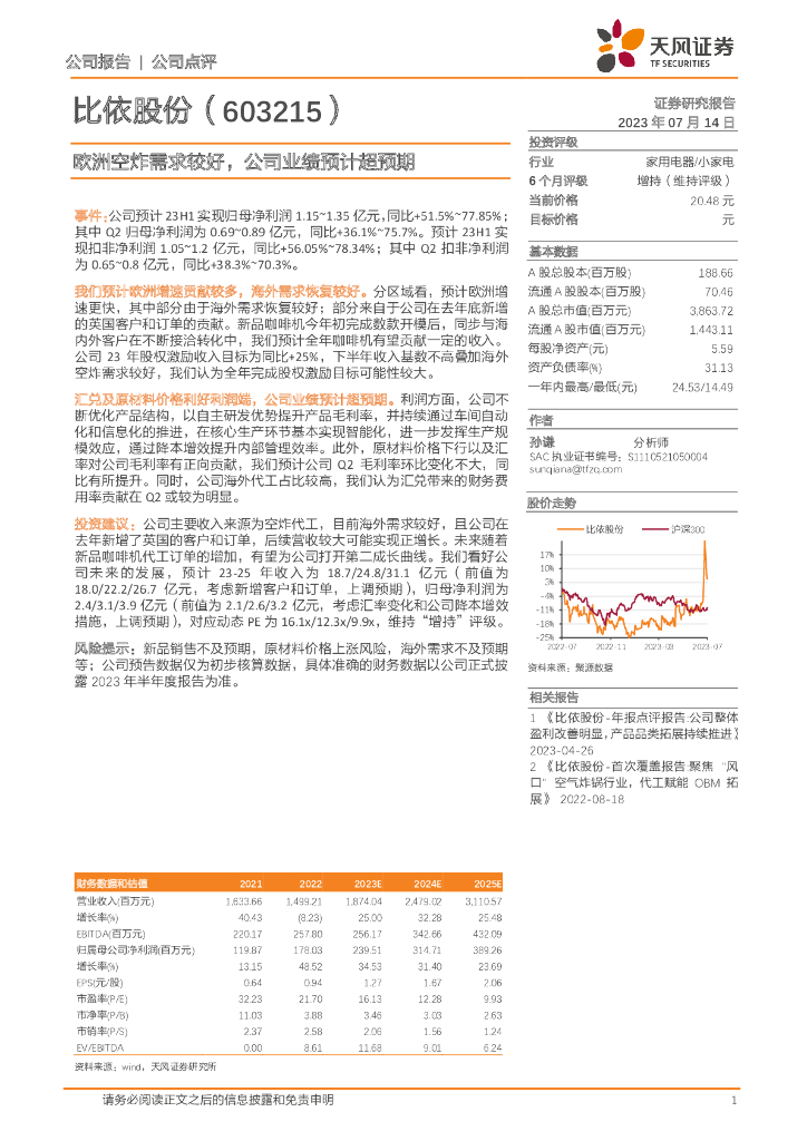 天风证券:比依股份(603215)-欧洲空炸需求较好,公司业绩预计超预期.pdf