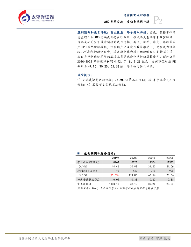 太平洋证券:通富微电(002156)-AMD异军突起,多业务协同并进.pdf