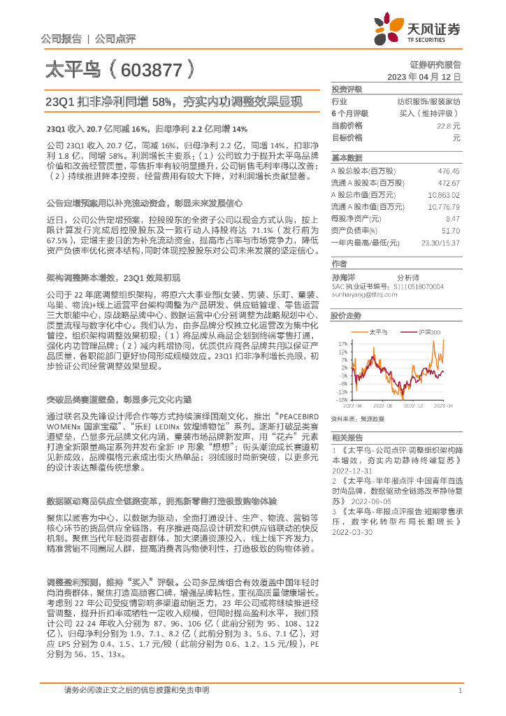 天风证券:太平鸟(603877)-23Q1扣非净利同增58%,夯实内功调整效果显现.pdf