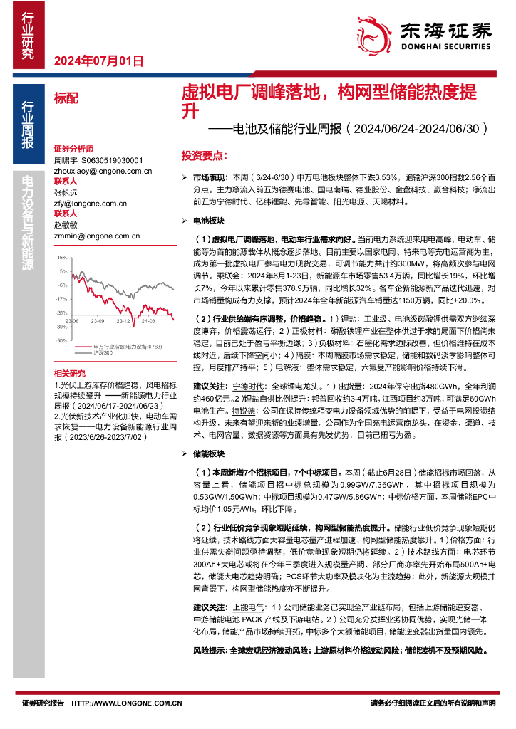 东海证券:电池及储能行业周报:虚拟电厂调峰落地,构网型储能热度提升.pdf
