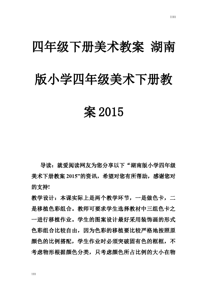 四年级下册美术教案-湖南版小学四年级美术下册教案.doc