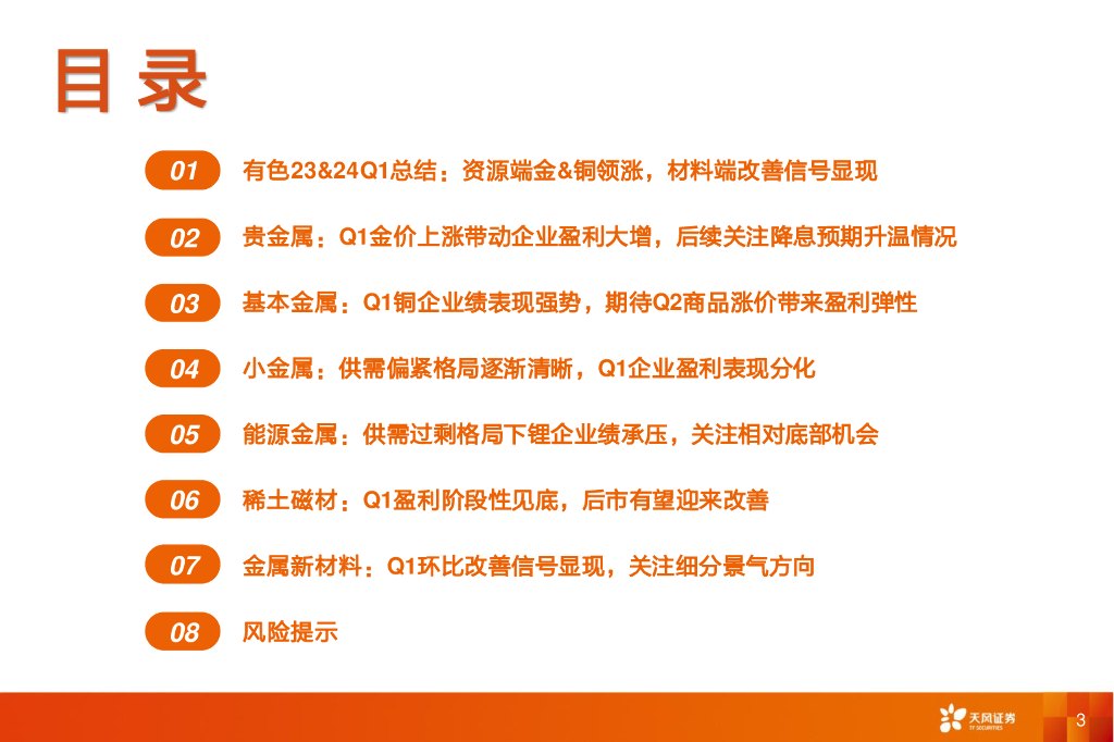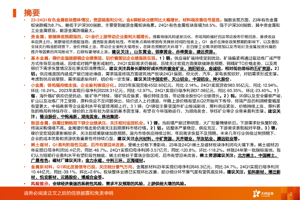 天风证券:金属与材料23&24Q1总结:资源端金&铜领涨,材料端改善信号显现.pdf