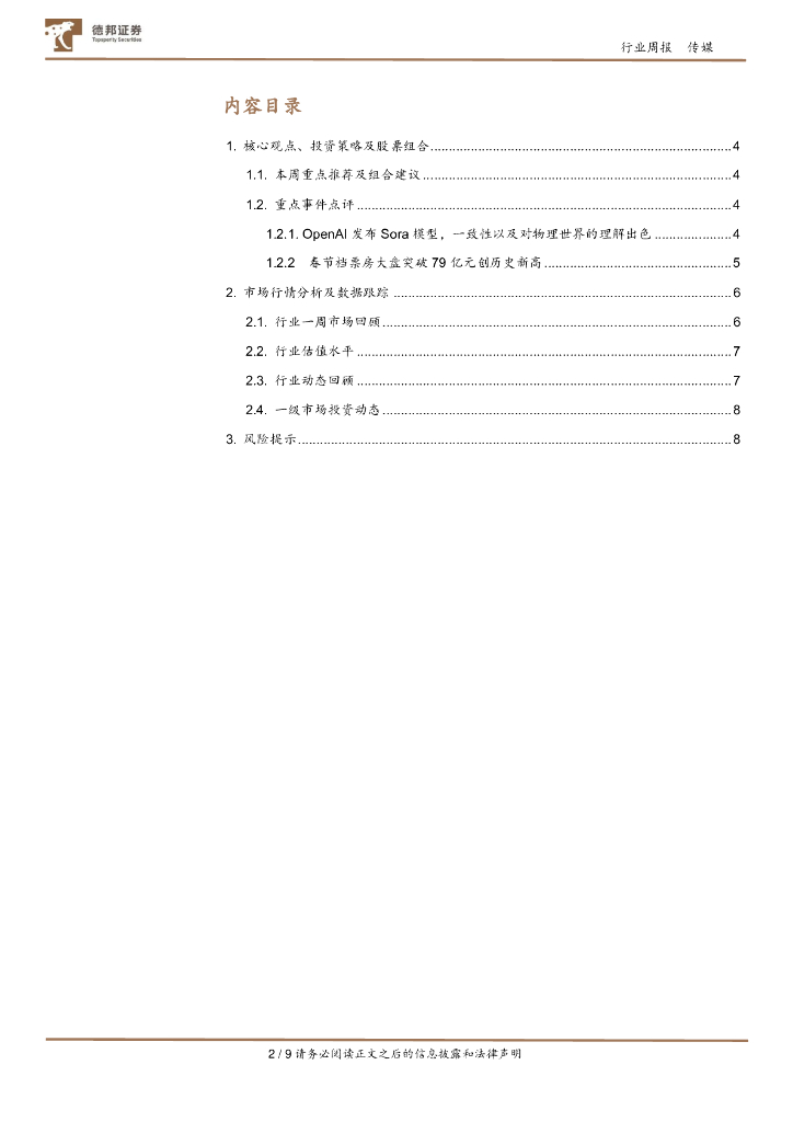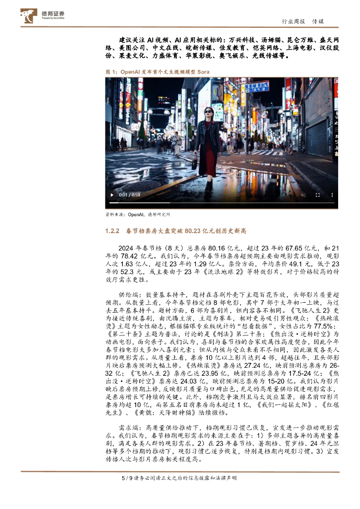 德邦证券:传媒互联网行业周报:OpenAI发布Sora视频模型;春节档票房创历史新高.pdf