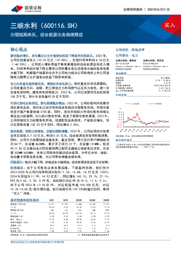 国信证券:三峡水利(600116)-业绩短期承压,综合能源业务持续推进.pdf