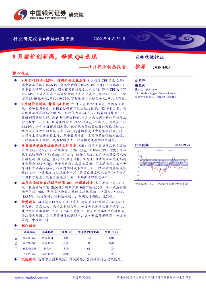 中国银河:农林牧渔行业9月行业动态报告:9月猪价创新高,静候Q4表现.pdf