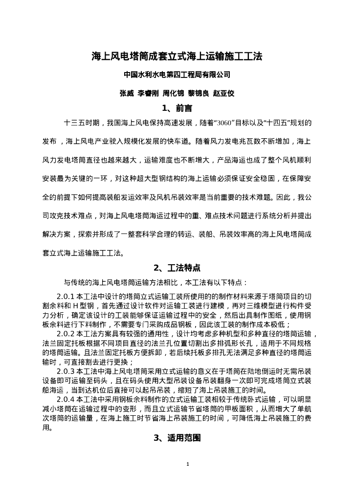 QHGF-2022147 海上风电塔筒成套立式海上运输施工工法.doc