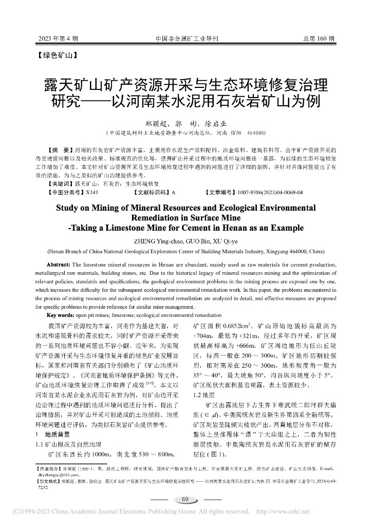 露天矿山矿产资源开采与生态环境修复治理研究-以河南某水泥用石灰岩矿山为例.pdf