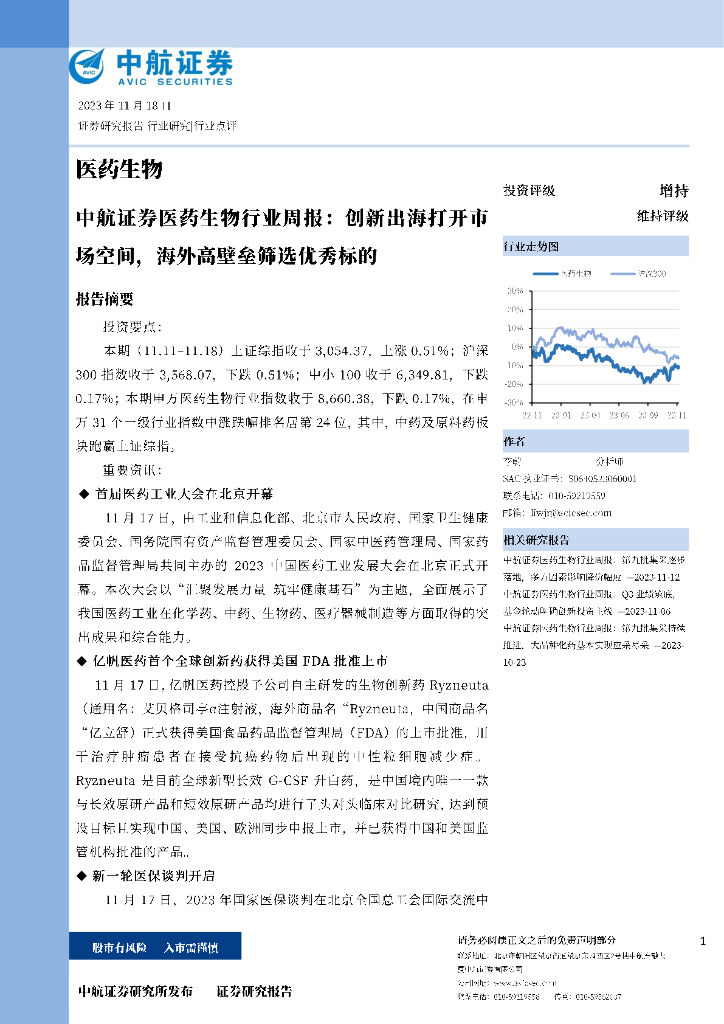 中航证券:医药生物行业周报:创新出海打开市场空间,海外高壁垒筛选优秀标的.pdf