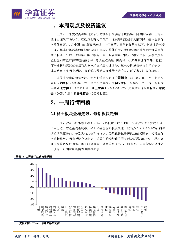 华鑫证券:有色金属行业周报:短期调整不改中长期趋势,看好铝和稀土板块.pdf