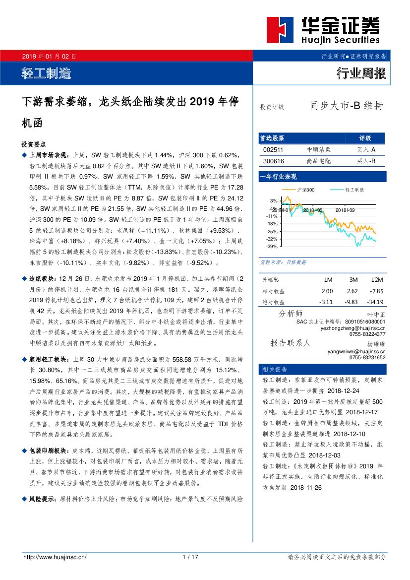 华金证券:轻工制造行业周报:下游需求萎缩,龙头纸企陆续发出2019年停机函.pdf