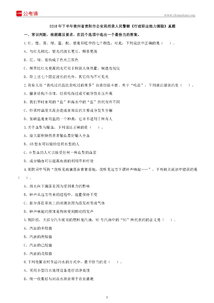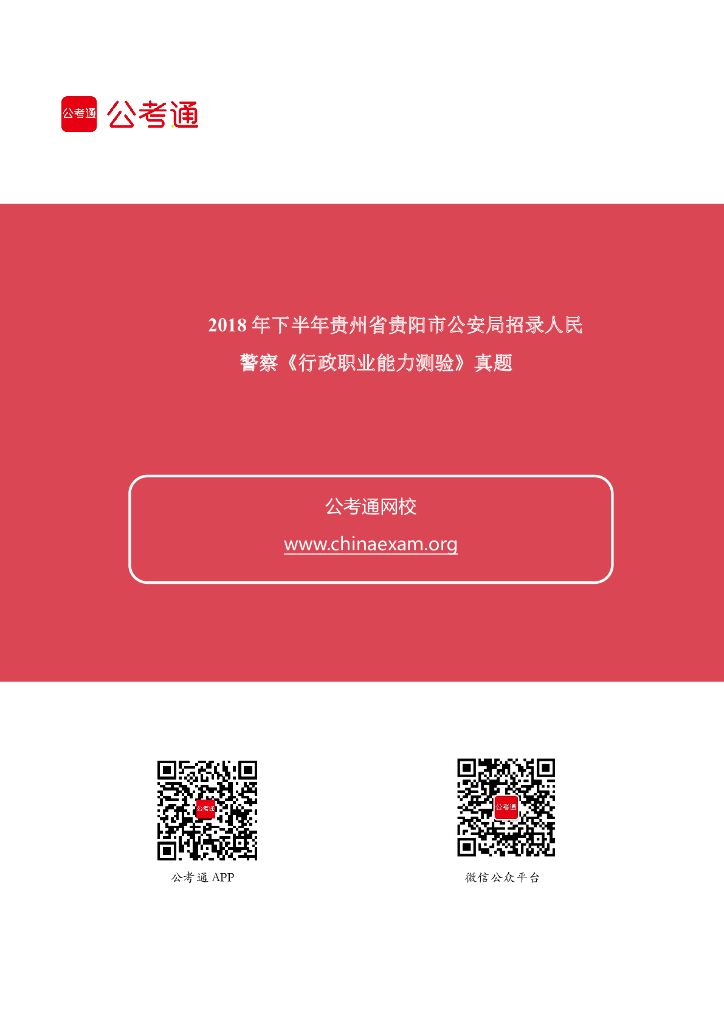 2018年下半年贵州省贵阳市公安局招录人民警察《行测》真题.pdf