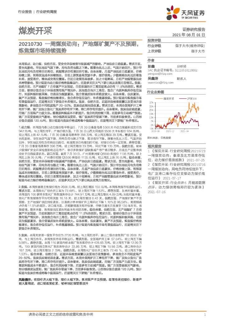 天风证券:煤炭开采一周煤炭动向:产地煤矿复产不及预期,炼焦煤市场持续强势.pdf