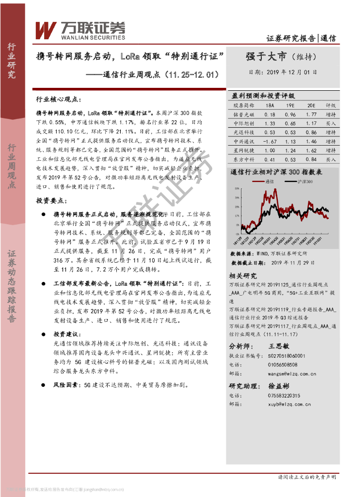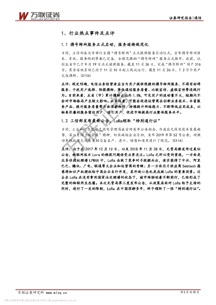 万联证券:通信行业周观点:携号转网服务启动,LoRa领取“特别通行证”.pdf