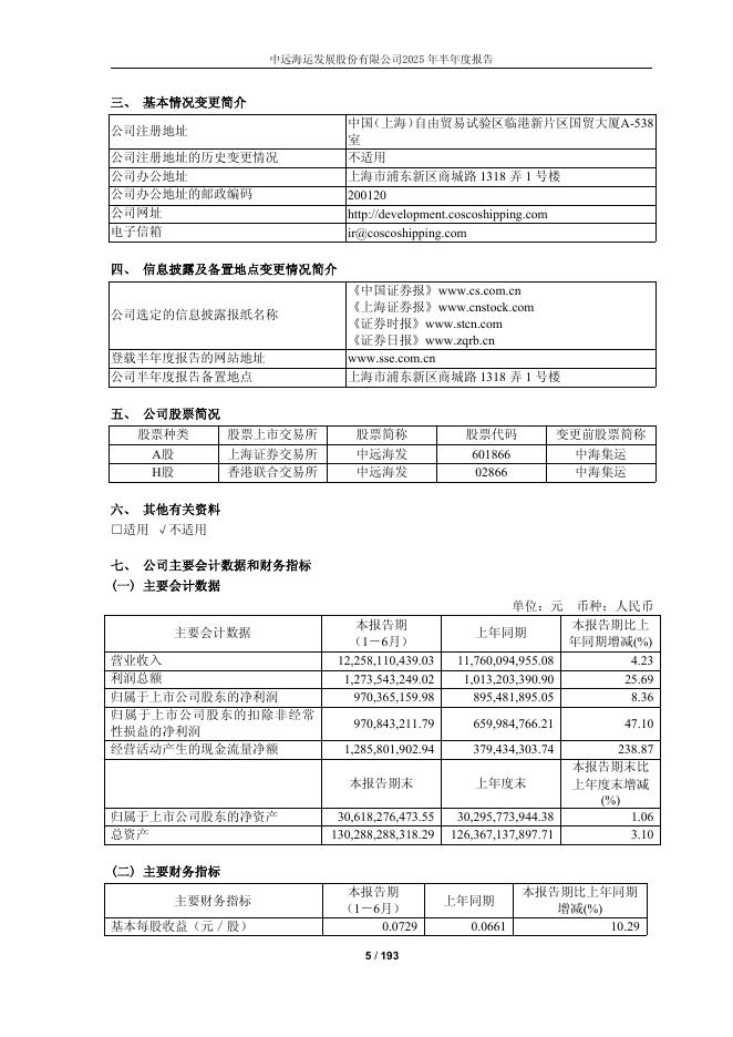 601866-中远海发:中远海发2025年半年度报告.pdf